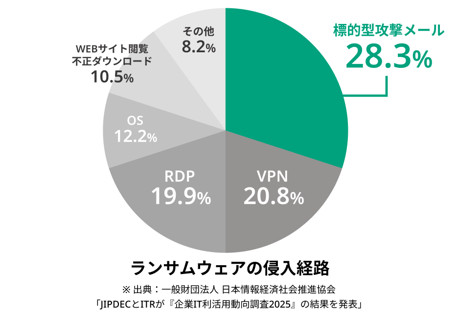 近年、取引先や経営層を装ったフィッシングメールによる標的型攻撃が急増しています。警察庁の報告(令和4年)では、企業・団体を狙ったサイバー攻撃が社会インフラにも影響を及ぼす事例が確認されており、IPAの「情報セキュリティ10大脅威」でも「標的型攻撃による機密情報の窃取」が上位にランクインしています。こうした攻撃は、メールという"信頼されやすい手段"を悪用して行われているため、従業員一人ひとりの対応力が企業の防御力を左右します。企業の信用や業務継続に影響を及ぼす前に、技術対策と従業員教育の両面から備えることが重要です。