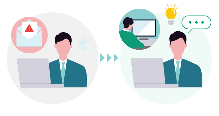 模擬メールを使った訓練により、どの程度の従業員が攻撃メールを開封してしまうかを測定。現状のリスクレベルを定量的に把握できます。