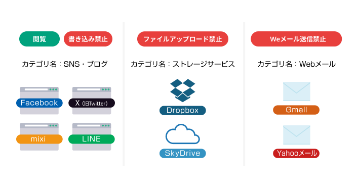 掲示板やSNSへの書き込み制限も可能で、情報漏洩の予防にも貢献します。
