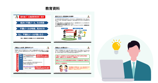 ITリテラシーが低い従業員にも配慮した、わかりやすい教育資料を提供。