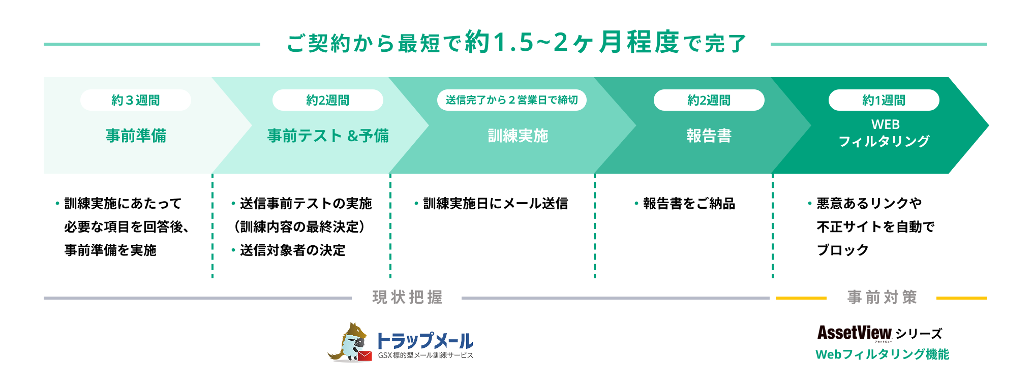 ※各段階において、GSX社のコンサルタントが事前打ち合わせ(1回)を含め、メールまたは電話にてアドバイザリーおよびサポートを提供いたします。