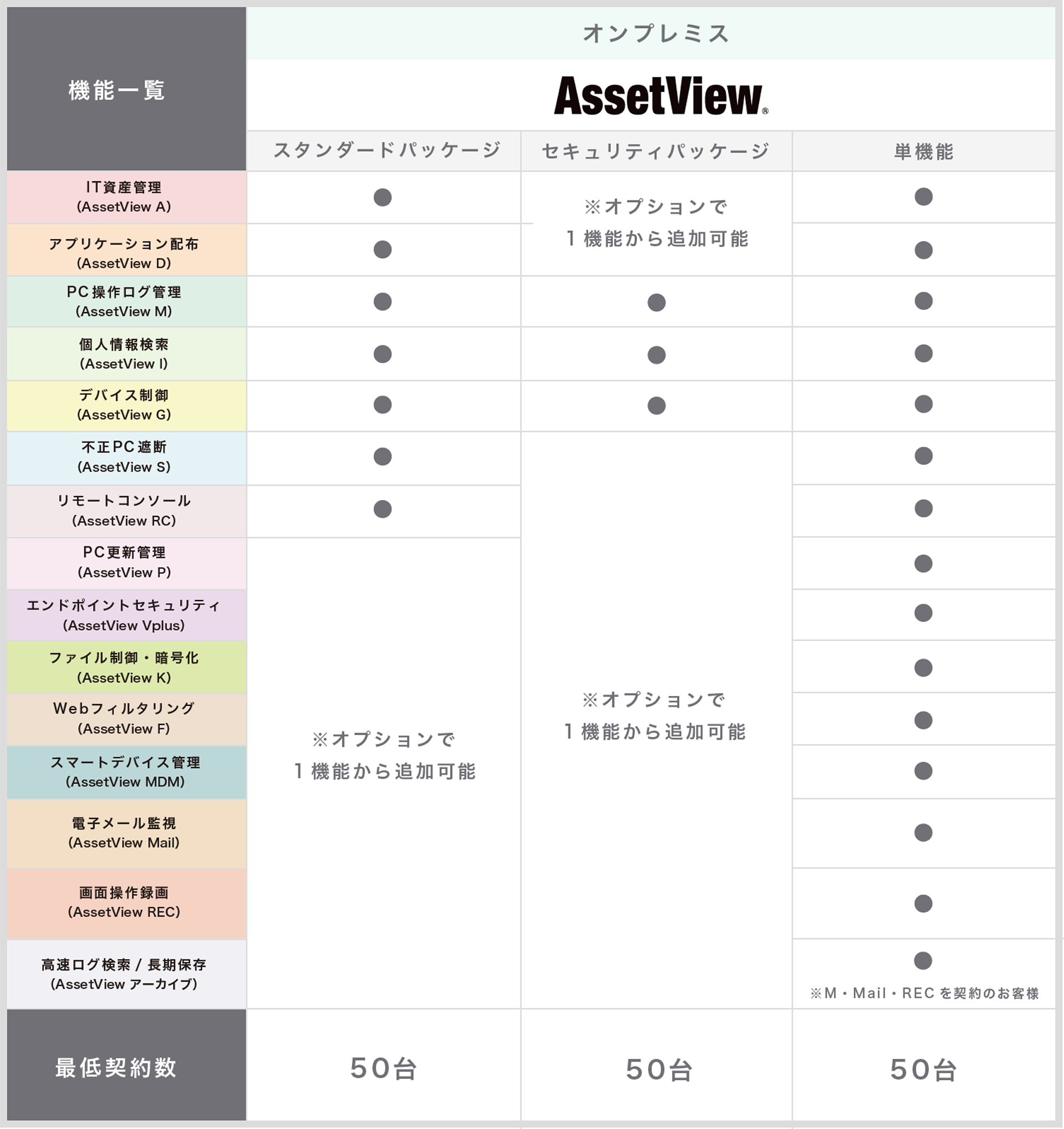 ※AssetView オンプレミス版では専用データベースライセンスも別途必要となります。