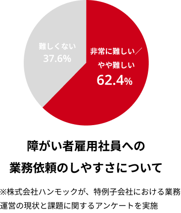 62.4%が障がい者雇用における日常業務の運営面で、業務の受け渡しに難しさを感じており、業務内容そのものよりも、日常的な指示の出し方や情報の伝達方法に負荷がかかっている状況が見られました。