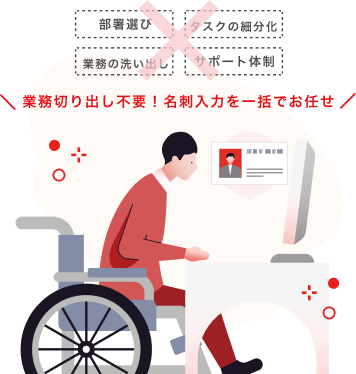 本サービスでは「名刺管理業務」というフローが確立された業務を一括でお引き受けできるため、改めて業務の洗い出しや切り出し作業は一切発生しません。
